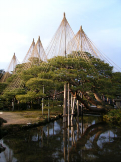 池に迫り出す松の勇壮な枝振り、そして冬ならではの雪吊り。