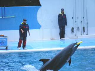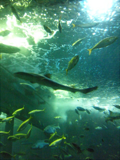 どういう風の吹き回しか、彼が新潟の水族館に連れてってくれると言うので、喜んで行ってきました! 小旅行と言ったところか…隣の県とはいえ、新潟は長細いので、県境越えてから新潟市までは本当に遠いのですよ。 先日の東北への旅でも通った新潟中央ジャンクションまでは3時間ほど。 逆方向へ向かった場合なら、3時間あれば隣の隣、福井まで行けるのに…本当に新潟は広い。 ていうか長細い。 さて、2009年国民体育大会が絶賛開催中とか知りもしなかった新潟市に到着。 新潟市水族館『マリンピア日本海正面』正面にて。 結構大きい建物。 玄関入ったら明訓高校の山田太郎君がいました。 何で頭脳派捕手で7割超の打率を誇る強打者で最初は柔道部だった山田がこんな所にいるのかというと、それは作者の水島新司先生が新潟県人だから。 ドカベンか…学生の頃、CSのアニメチャンネルで繰り返し放送されていたのでよく見てた。 明訓二塁手の殿馬が大好きだったんだぜ…ドカベンフィギュアで殿馬が一発で出た時は本当に嬉しかった。 他には白新高校のピッチャー不知火も好きだったな。 妙に熱くなってしまいましたが、今日は水族館に来たのであってドカベンは本来関係ないのですよ。 あ、山田の逆側には犬夜叉がいました。 これまた作者の高橋留美子先生が新潟県人だからだそうです。 通称ドカベン号と犬夜叉号って言って、新潟市内の観光スッポトを巡る周遊バスも出てました。 入館すると、正面にいきなり水面が波打っていた。 しかも、その後ろにこれまた巨大なスクリーンがあって、日本海の上空や海上の様子が映されている仕掛け。 夕日のシーンが良い! 日本の地形を考えれば当たり前なんだけど、太平洋側とは逆で、日本海側各県にとっては太陽は山から出るし、海に沈む。 実にこれが日本海なのだ…という演出になっているそうな。 とはいえ、T山市育ちの私にとって太陽は立山から登って山…ていうか丘に沈むものだったけどな。 さて、日が沈む海面を覗き込むと、存外この水槽は深いと分かる。 ていうか、下に人がいる。 スロープを下って地下へ…すると、さっきの水面は『日本海水槽』という一番大きい水槽の最上部だった事が分かる。 イワシやらアジやら、小さい光る魚が群れで泳ぎ、マダイだったか大きい魚も泳ぎ、小型ながらサメも泳ぎ、でっかいエイも泳ぐ海の中を、トンネルから見上げる。 サメが良い。 しなやかに泳ぐ細長い体の優美な事。 南海の水槽ではカクレクマノミが。 いまや水族館の定番となった感がある。 こちらはハナダイだったか、派手な魚。 わりと深海に生息するものだそうだ。 しかし深海では光が届かず、色の彩度が下がってグレースケールの世界になる。 ゆえに、この魚も本来の生息地では地味な魚であるらしい。 マツカサウオ。 まつぼっくり泳いどる!! チンアナゴ。 ムーミン谷の不思議生物ニョロニョロみたい。 こっち見んなwwww 魚の正面顔ってどうしてこう間抜けなんだろう。 こっち見んなwwwwwwww 毒のある水生生物のコーナーにて。 ピンク色のイソギンチャク。 派手だ… そして別棟でイルカショーが始まる時間になったのでそちらへ向かう。 バンドウイルカが跳ね回る! のとじま水族館でもイルカショーを見たが、そっちに比べてショー自体はパパッと終わる印象。 しかしイルカの生態についても詳しい説明が入るので、こちらはこれで面白い。 これで水族館は一通り回ったので出た。 今朝は曇っていたが、昼近くなって陽射しが強い。 しかしすぐ傍が海なので風が強く、暑くはないので過ごし易い。 ちょうど昼飯時だったので新潟の市内で何か食べようと移動を開始した。 午後編へ→ PR |