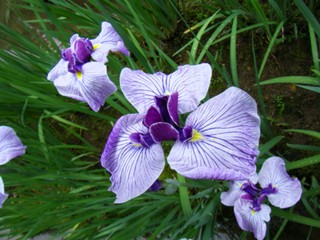 ・花しょうぶは水辺に生えてて、葉脈がはっきりしてて、花弁の付け根に黄色の紋がある。